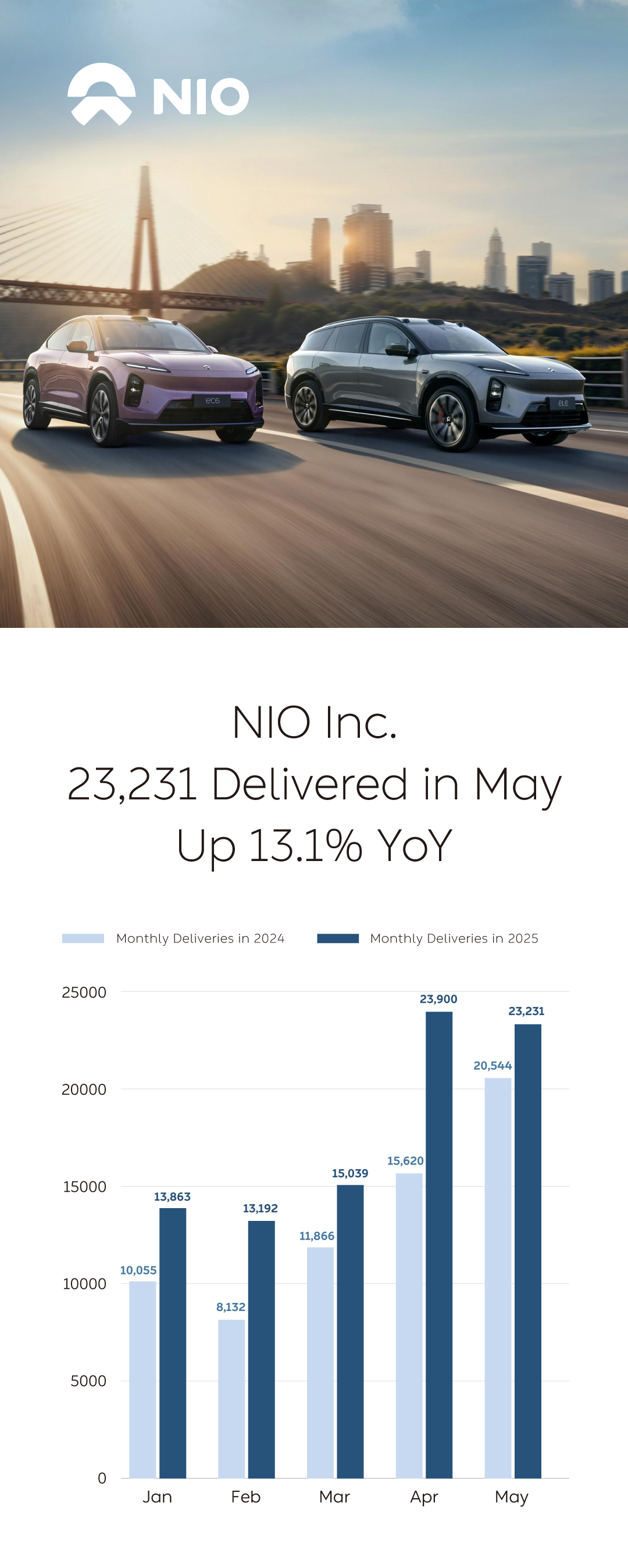 NIO Inc. Delivered 23,231 Vehicles in May 2025